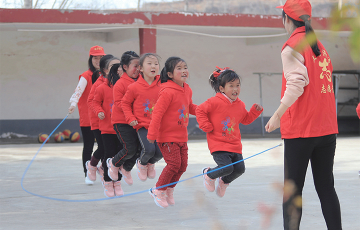 和留守兒童一起跳繩
