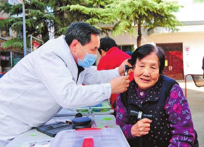 3月4日,靈寶市衛(wèi)健委組織黨員志愿者和醫(yī)護人員在金秋公寓為老年人義診。張星星 攝