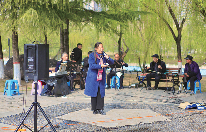 春風拂面,楊柳依依。近日,幾位喜愛樂器、戲曲的老年人自發(fā)組成了一支老年演奏隊,吹拉彈唱,自娛自樂,好不熱鬧。記者 劉培琳 攝