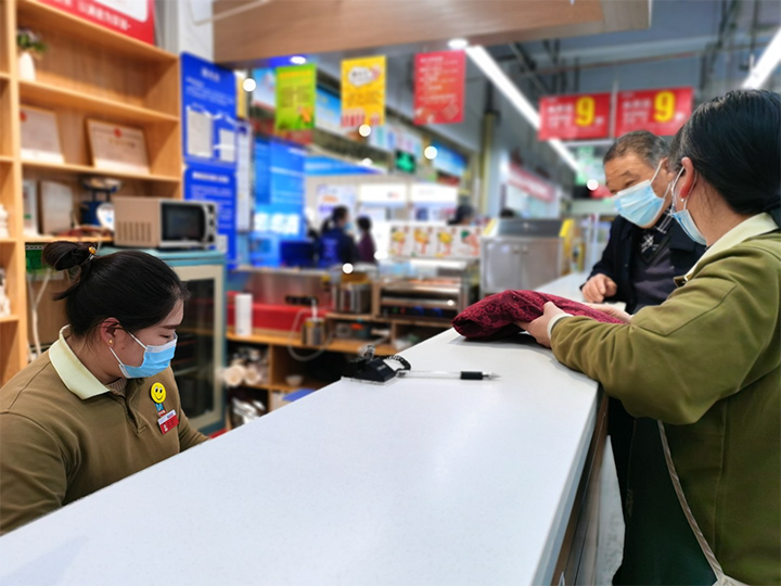 5天前,劉先生給老伴買(mǎi)了件春款上衣,因購(gòu)買(mǎi)時(shí)比較匆忙,回家試穿后感覺(jué)衣服不太襯膚色,還有點(diǎn)小。可是買(mǎi)了快一周了,劉先生只好抱著試試看的態(tài)度來(lái)到超市。