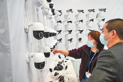數(shù)字化智能攝像頭吸引了不少人的目光。河南報業(yè)全媒體記者 朱哲 馬騰飛 攝