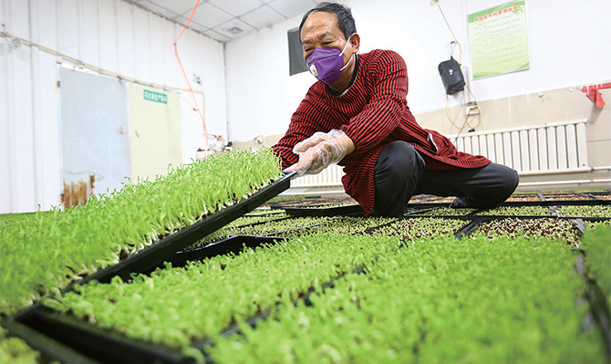 3月25日,承留鎮(zhèn)南杜村的濟(jì)源“新農(nóng)人”周昱臣在種植間里忙活著。菜框里一盆盆芽苗菜整齊擺放,看起來生機(jī)盎然。