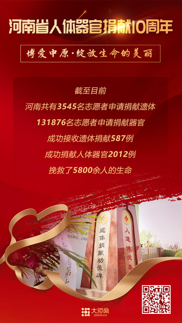 河南省推行人體器官捐獻10年 助力5800余人“重生”