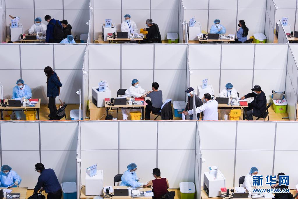 4月1日,在湖南省湘潭市湖南科技大學(xué)的“方艙接種點(diǎn)”,學(xué)生在接種新冠疫苗。新華社記者 陳澤國(guó) 攝