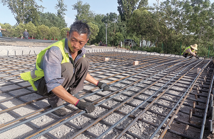 與此同時(shí),在S230南太行旅游公路白澗段施工現(xiàn)場(chǎng),工人正在綁扎搭板鋼筋。固定好的鋼筋板就像一張張牢固的“安全網(wǎng)”,為寬敞的公路打下堅(jiān)實(shí)的根基。