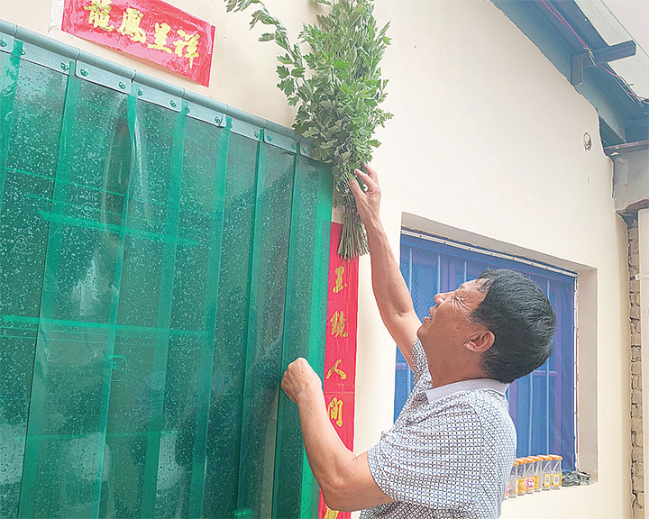 懸掛艾草迎端午。 趙鑫鑫 攝