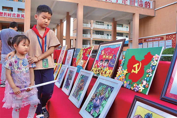 6月18日,沁園中學(xué)舉行“童心向黨 盛歌百年”——“慶祝建黨100周年”主題活動(dòng)?;顒?dòng)現(xiàn)場分五大版塊,分別從書法、繪畫、剪紙、攝影、手工制作、科技創(chuàng)新等方面進(jìn)行“童心向黨”教育實(shí)踐活動(dòng)的成果展示。記者 劉培琳 攝