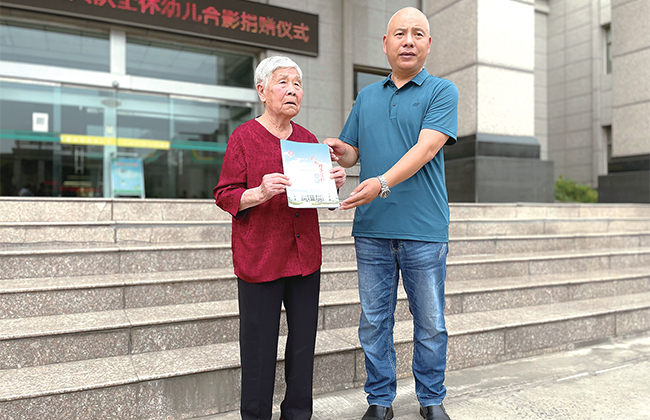 孫中紅(右)為劉素蘭(左)頒發(fā)捐贈(zèng)榮譽(yù)證書