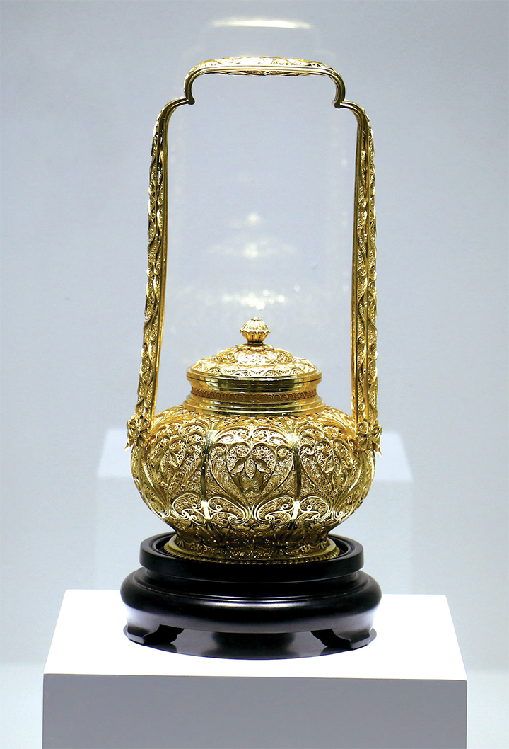 為了迎接八方賓朋,中國(guó)白銀城沁園工業(yè)園區(qū)展廳做了精心布置。濟(jì)源本土白銀加工企業(yè)在2樓展廳設(shè)置展柜,展示種類豐富多樣的白銀產(chǎn)品。3樓展廳則分為國(guó)家級(jí)大師區(qū)、中國(guó)傳統(tǒng)區(qū)、北京工美集團(tuán)大師專區(qū)、云貴少數(shù)民族專區(qū)及企業(yè)專區(qū),陳列展出了由國(guó)家級(jí)花絲鑲嵌制作技藝傳承人、中國(guó)工藝美術(shù)大師馬福良,云南省民族民間高級(jí)美術(shù)師、手工工藝大師寸發(fā)標(biāo),中國(guó)工藝美術(shù)大師王鵬、程淑美等30余位國(guó)家級(jí)工匠大師創(chuàng)作的《累絲提梁罐》《太平有象》《萬(wàn)歷翼善冠》《富貴花滿園》《舍利塔》等500余件精美作品。(記者 李楠 王興輝 程子明 文/圖)