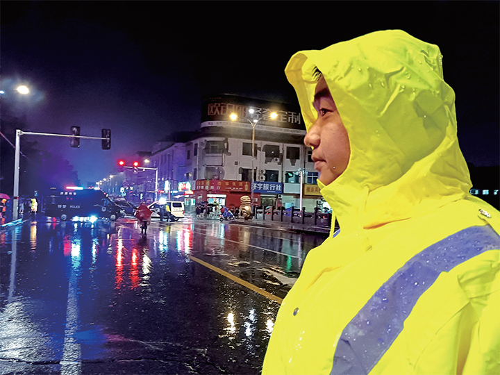 民警冒雨執(zhí)勤