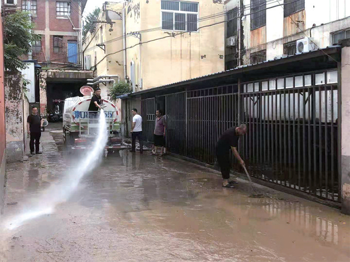 7月24日,濟(jì)水街道組織人員在轄區(qū)內(nèi)的農(nóng)機(jī)局家屬院清理淤泥、沖洗地面,讓群眾早日恢復(fù)正常生產(chǎn)生活。 王鐘毅 攝