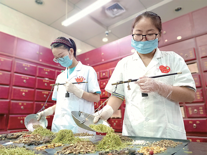 “蒼術(shù)9克、藿香10克、厚樸花12克、陳皮9克……”8月13日,在濟(jì)源市中醫(yī)院中藥房,工作人員正在熟練地調(diào)劑中藥。這張預(yù)防新冠肺炎的中藥處方,他們?cè)缫咽煊浻谛摹?/p>