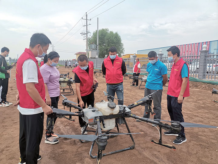 工作人員給種植戶介紹植保無人機(jī)