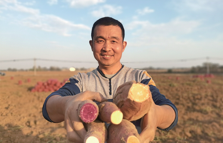 11月10日,在軹城鎮(zhèn)南郭莊村,看著堆積如山而又分類明晰的“寶貝疙瘩”,紅薯種植大戶盧兵開心地笑了。