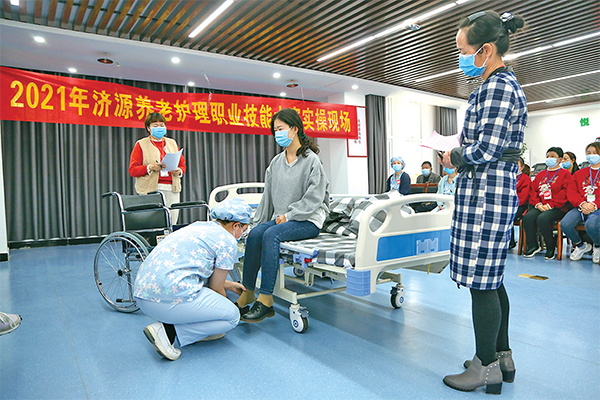 在養(yǎng)老護(hù)理行業(yè)干了兩年的侯夢真對(duì)2021年10月份舉辦的濟(jì)源賽區(qū)養(yǎng)老護(hù)理職業(yè)技能大賽記憶猶新?!斑@次比賽很規(guī)范。通過參加這次比賽,我在護(hù)理方面的技能和專業(yè)知識(shí)水平都有所提高,護(hù)理操作也更加規(guī)范了?!焙顗粽嫘χ鴮?duì)記者說,“養(yǎng)老護(hù)理并不是簡單的對(duì)老人的身體進(jìn)行護(hù)理,更需要給予老人人文關(guān)懷。這就需要我們學(xué)會(huì)臨場應(yīng)變,學(xué)會(huì)與家屬溝通?!?/p>