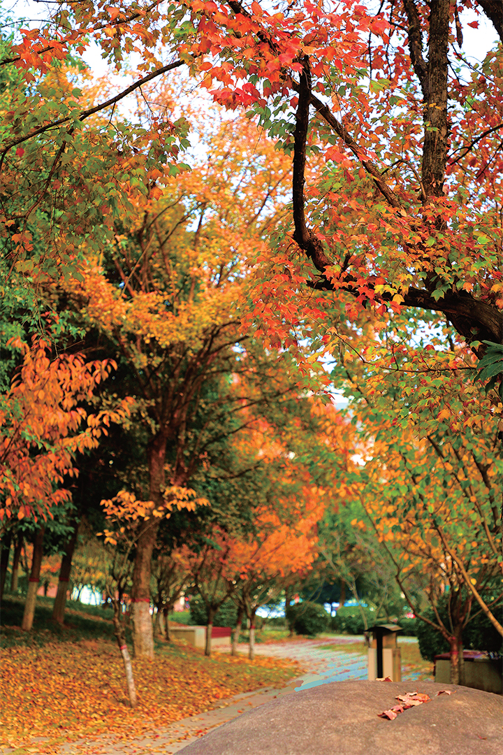 11月22日,河清園內,枝頭樹葉五彩繽紛,落葉鋪滿地面,構成一幅初冬美景。全媒體通訊員 王祥東 攝