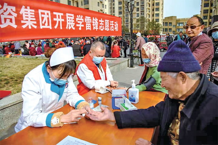 三月春風(fēng)暖人心, 雷鋒精神永傳承 。3月3日,濟(jì)源投資集團(tuán)組織文明志愿者在富士花園社區(qū)開展學(xué)雷鋒志愿服務(wù)活動(dòng),為群眾愛心義診、理發(fā)。李曉 王浩 攝