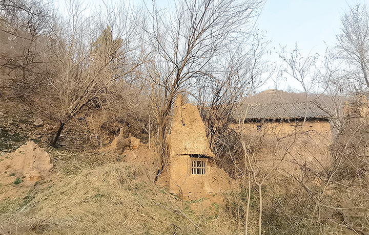 一間土房,一段殘墻,兩棵古樹,門前已經(jīng)干涸的小河,廢棄的石磨盤,還有遠(yuǎn)處已經(jīng)坍塌的一孔窯洞,讓尋根的一行人不勝唏噓。山川依舊,斗轉(zhuǎn)星移,生活巨變。山無言,樹無聲,卻記載著悠悠的歲月,見證著歷史的變遷,也在等待著被思念注滿“鄉(xiāng)愁”的親人。