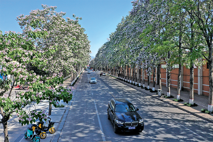 “我家離文博路不遠(yuǎn)。每年4月中下旬,文博路兩側(cè)的楸樹都開花了。從這里經(jīng)過,看著盛開的花朵,心情會(huì)特別愉悅?!笔忻窭钕壬嬖V記者,周末,一家人會(huì)在這里散步,感受春天的美好。