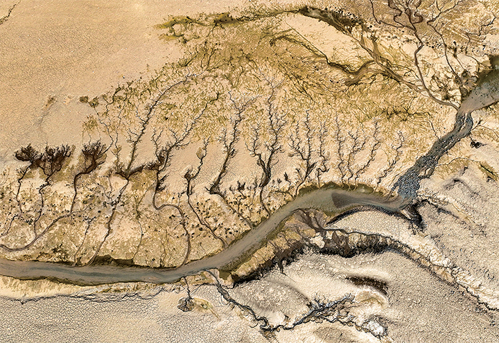 近日,隨著黃河小浪底水利樞紐汛前調(diào)水調(diào)沙的結(jié)束,黃河小浪底庫區(qū)水位下降,大面積河床裸露出水面,河水在河床上沖刷留下的痕跡形成黃河“沙畫”。新華社發(fā)(苗秋鬧 攝)