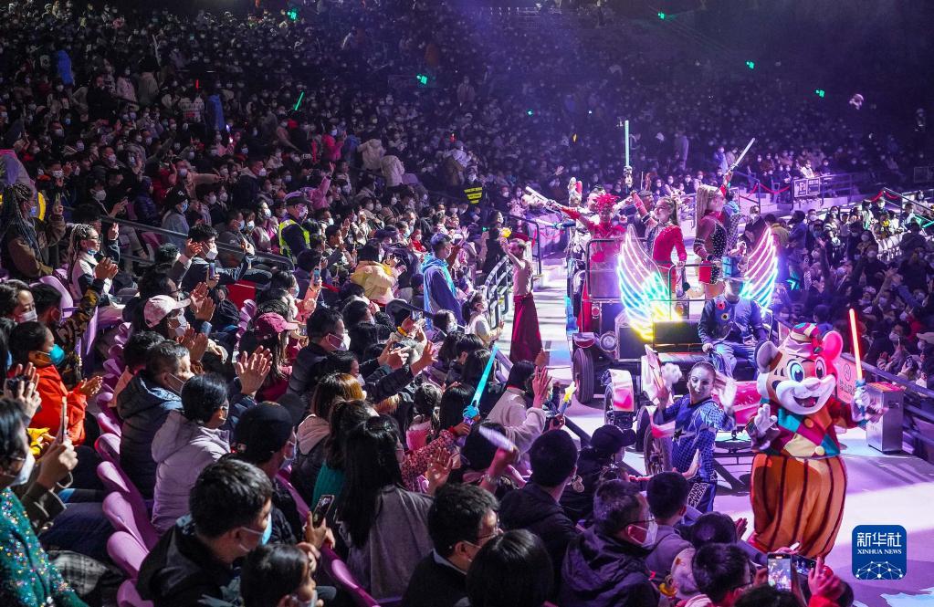 游客在廣州長(zhǎng)隆旅游度假區(qū)游園看馬戲表演(2022年12月31日攝)。新華社記者 劉大偉 攝