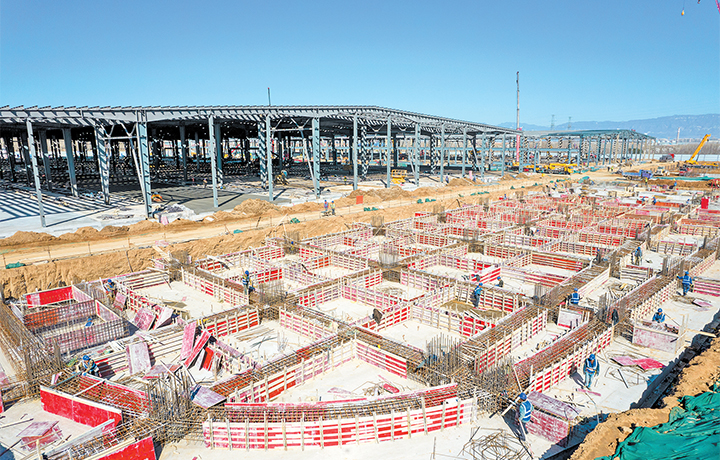 這是記者2月21日拍攝的進(jìn)出口加工貿(mào)易產(chǎn)業(yè)園A區(qū)項(xiàng)目施工場(chǎng)景。