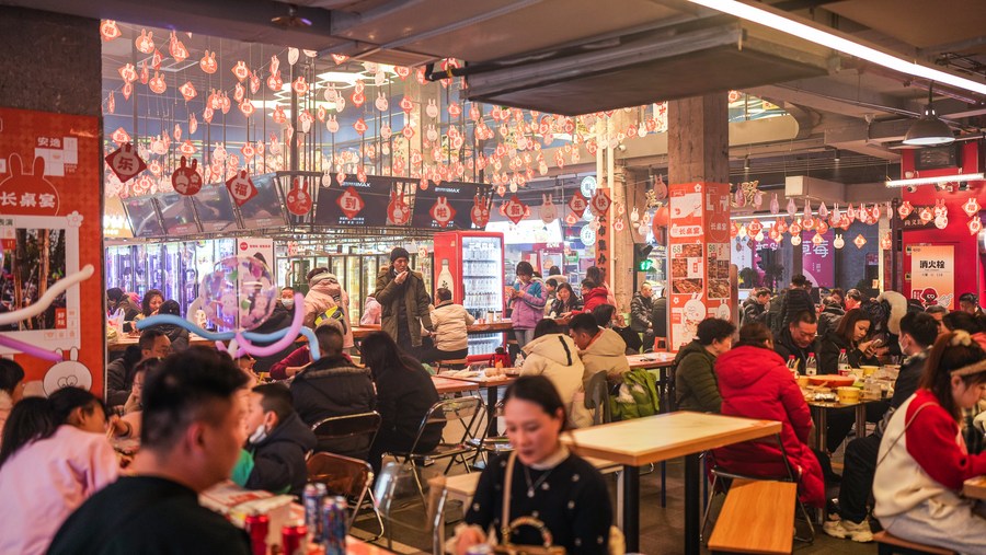 1月23日,消費者在貴陽市南明區(qū)“青云市集”品嘗特色美食。新華社記者陶亮攝