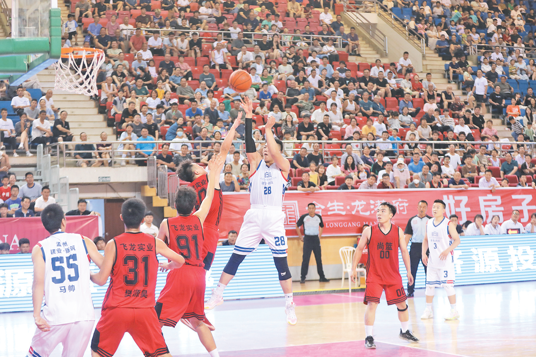 7月6日,濟源籃球城體育館,隊員跳投進攻。
