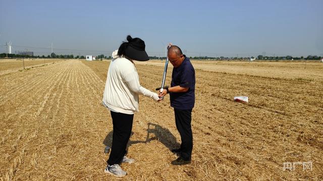 滑縣農(nóng)業(yè)農(nóng)村局技術(shù)人員在取土測(cè)墑(央廣網(wǎng)見(jiàn)習(xí)記者 郝振青 攝)