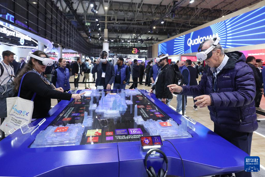 3月3日,在西班牙巴塞羅那舉行的2025年世界移動通信大會上,人們體驗頭顯設備。新華社記者 趙丁喆 攝