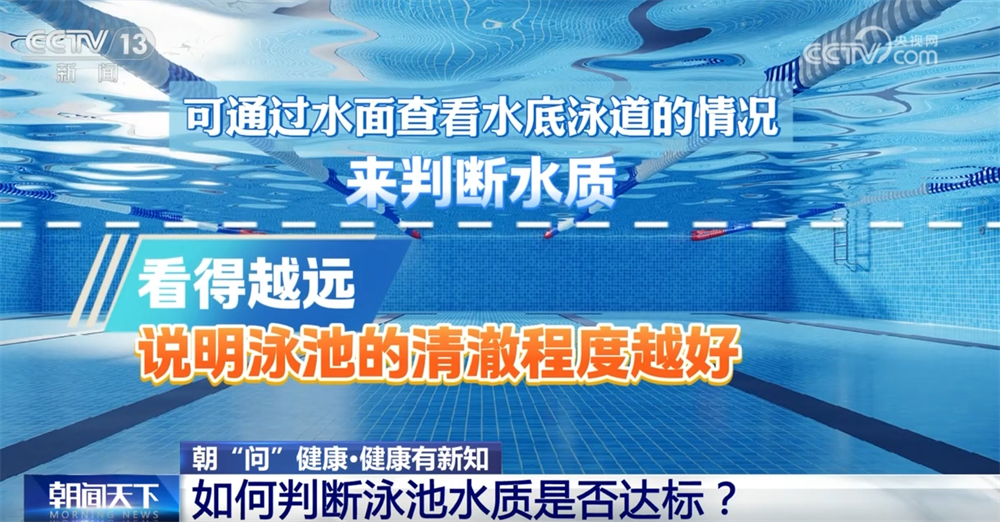 游離性余氯是指泳池水經(jīng)過加氯消毒后水中余留的氯成分,國標要求是0.3到1.0毫克每升。市民游泳時可以注意一下游泳場館的當天公示。除此之外,也可以通過水面查看水底泳道的情況來判斷水質(zhì)。看得越遠,說明泳池的清澈程度越好。還可以把泳池里的水稍微打起水花,如果這些小水泡能在10到15秒內(nèi)自行消散,就說明池水的氧化能力是可以的。