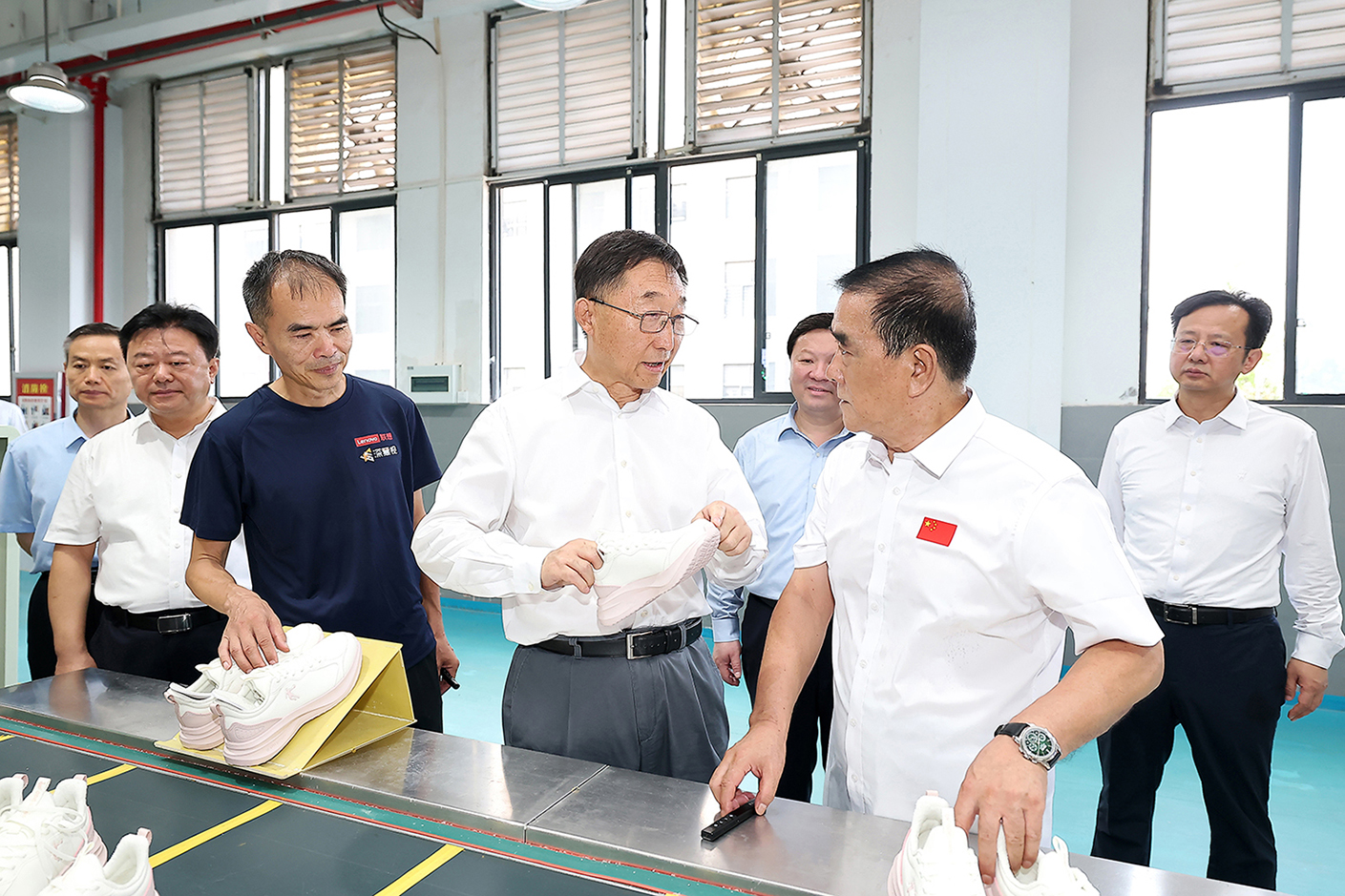 睢縣是中國(guó)制鞋產(chǎn)業(yè)基地,休閑運(yùn)動(dòng)鞋年產(chǎn)量占全國(guó)30%以上。在鞋文化博物館,劉寧聽(tīng)取制鞋產(chǎn)業(yè)發(fā)展情況匯報(bào),對(duì)當(dāng)?shù)鼐o盯“一雙鞋”壯大主導(dǎo)產(chǎn)業(yè)的做法表示肯定,強(qiáng)調(diào)要堅(jiān)定信心,不斷更新制作工藝、提升產(chǎn)品品質(zhì),推進(jìn)鞋業(yè)標(biāo)準(zhǔn)制定和品牌運(yùn)營(yíng),加快內(nèi)外貿(mào)一體化發(fā)展。斯凱奇(福盛)鞋業(yè)、中喬(河南)體育有限公司鞋類(lèi)產(chǎn)品遠(yuǎn)銷(xiāo)海內(nèi)外,產(chǎn)品實(shí)現(xiàn)個(gè)性化定制、自動(dòng)化生產(chǎn)。劉寧希望企業(yè)進(jìn)一步推廣應(yīng)用大數(shù)據(jù)、物聯(lián)網(wǎng)等高新技術(shù),打造智能制造車(chē)間,提升工業(yè)數(shù)字化水平,不斷向產(chǎn)業(yè)鏈價(jià)值鏈中高端邁進(jìn)。他叮囑企業(yè)負(fù)責(zé)人要注重人文關(guān)懷,改善生產(chǎn)環(huán)境,采取防暑降溫降噪措施,加強(qiáng)勞動(dòng)者權(quán)益保障,讓員工生活更有品質(zhì)。