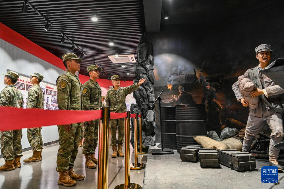 ??陸軍第73集團(tuán)軍某旅夜襲陽明堡“戰(zhàn)斗模范連”戰(zhàn)士在連史館學(xué)習(xí)連隊(duì)歷史 (2023年12月2日攝)。新華社發(fā)(劉志勇攝)