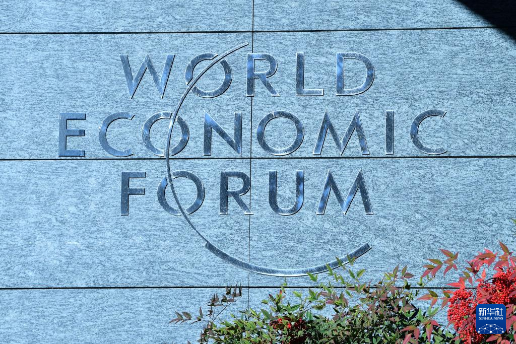 這是1月14日在瑞士日內(nèi)瓦世界經(jīng)濟(jì)論壇總部拍攝的世界經(jīng)濟(jì)論壇標(biāo)識。 新華社記者 連漪 攝