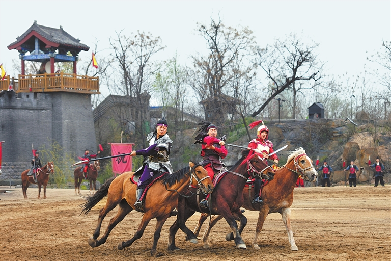 萬歲山武俠城《三打祝家莊》演出現(xiàn)場。 本報全媒體記者 馬紹坤 攝