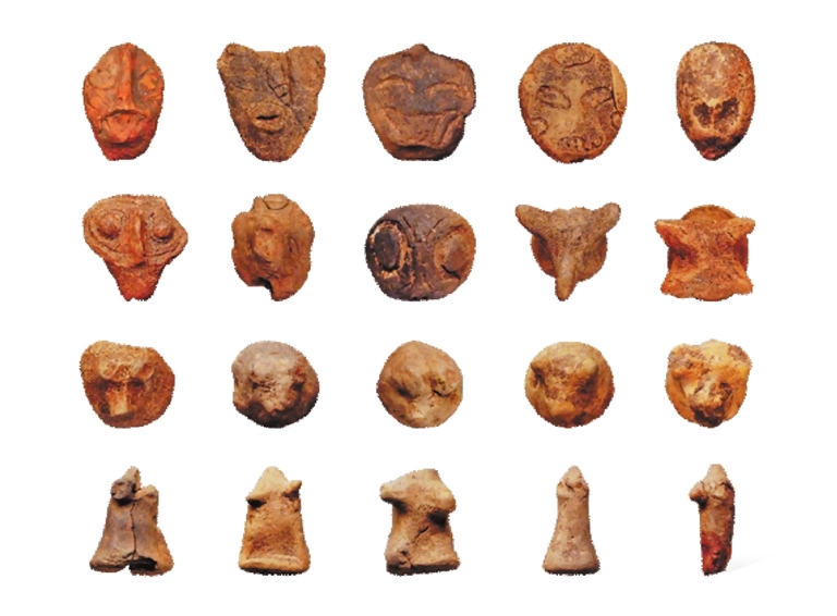 裴李崗遺址出土的人面獸面陶塑。鄭州市文物考古研究院供圖